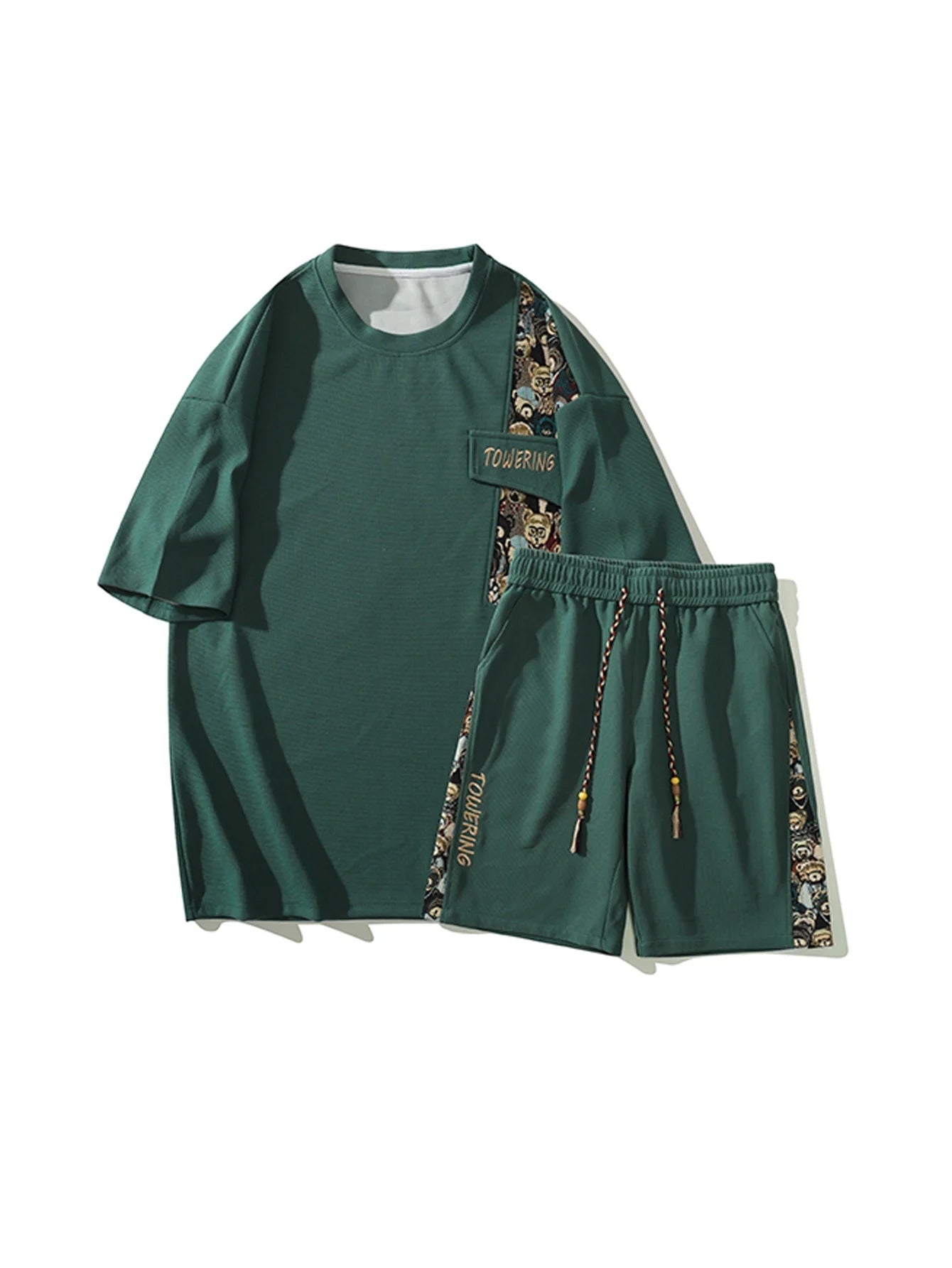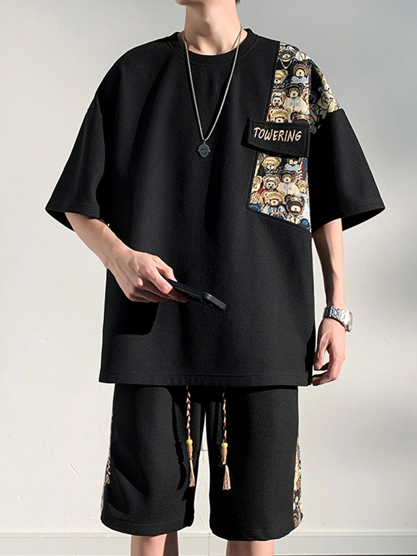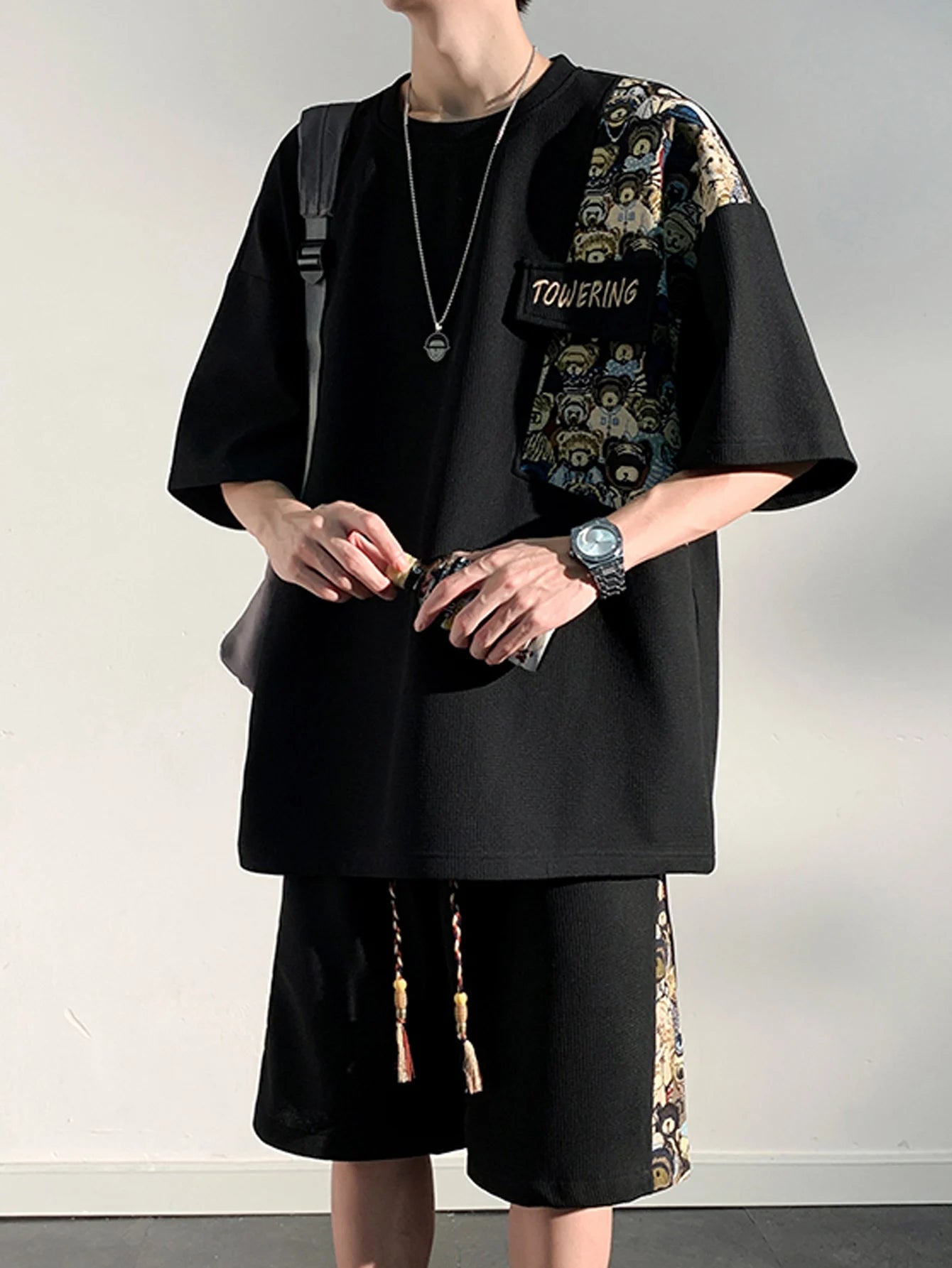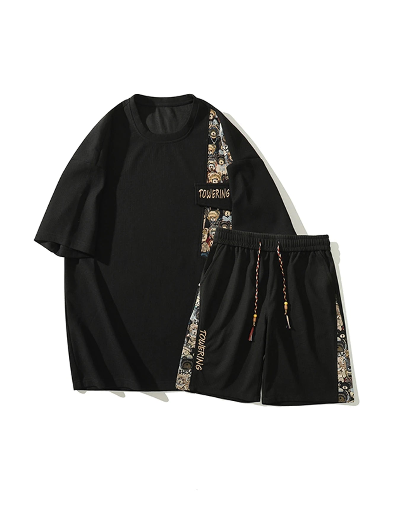 This oversized set brings a bold mix of texture and shape with contrast paneling, thick cotton-blend fabric, and stitched accents that catch the eye. From the dropped shoulders to the mid-knee shorts, every detail feels deliberate—easy to wear but never basic.